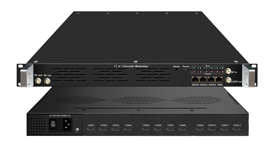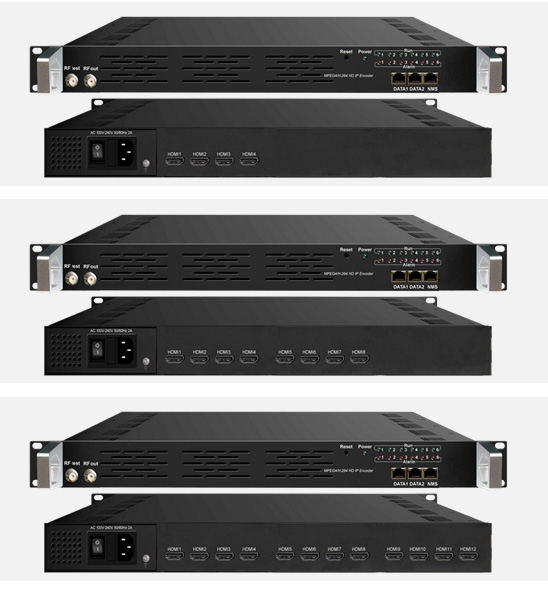 NDS3542I 系列高清编码调制一体机是我公司*研发的集高清编码和调制于一体的高性价比设备。该设备支持8路/12路HDMI输入、1路千兆IP输入/出、1路百兆IP输入;支持4个DTMB单载波(或DVB-C/-T)输出或4路MPTS输出。该设备支持OSD功能,可在每路编码视频中插入图片、二维码、文字等信息(选配),具有高集成度、高性能、低成本的特点,单台设备集成了一套前端系统功能,非常适用于酒店、会所、医院、浴场等数字电视系统。