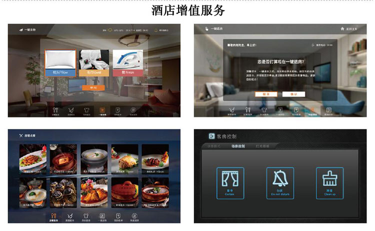 本系统支持30-80套高清在线直播,1000部自缓存本地点播,当今智慧酒店时尚的影音系统。