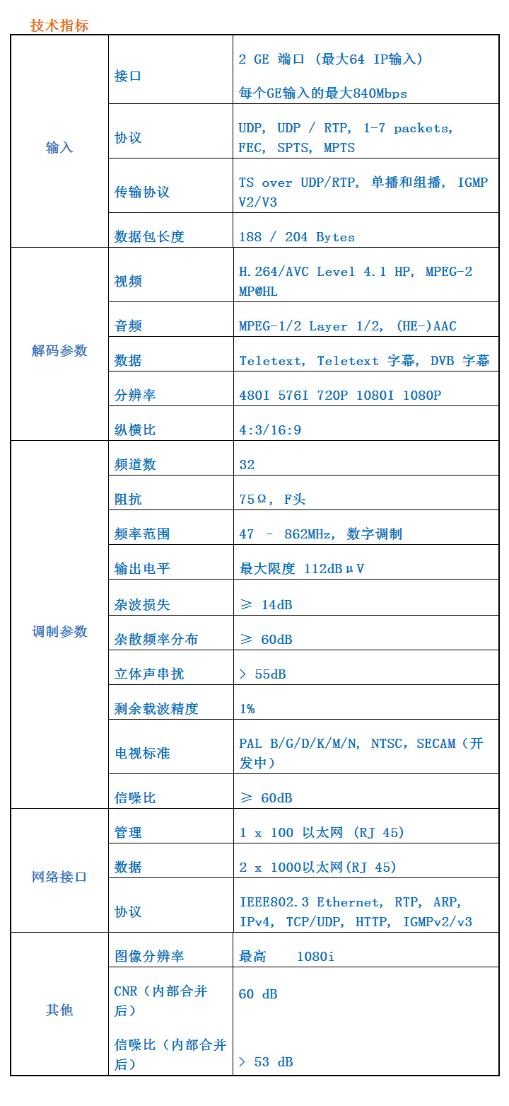 l 将高达32个千兆以太网MPEG TS IP多播组处理为高达32个标准PAL或SECAM电视节目(SECAM正在开发中)