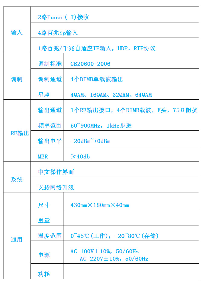 ☞支持1个RF输出接口,4个DTMB单载波输出
